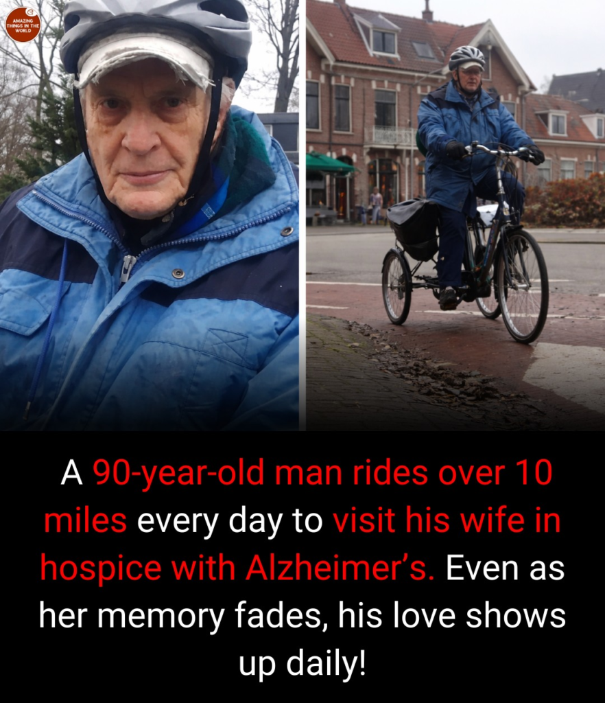 Every morning, a 90-year-old man climbs onto his bicycle and begins a familiar journey. The ride is not short — about 10.5 miles each way — and at his age, every mile carries weight. His legs ache, the road feels longer than it used to, and the weather is not always kind. But none of that stops him. His destination is a hospice facility where his wife lives, battling advanced Alzheimer’s disease. For him, this ride is not exercise or routine. It is love, put into motion.
